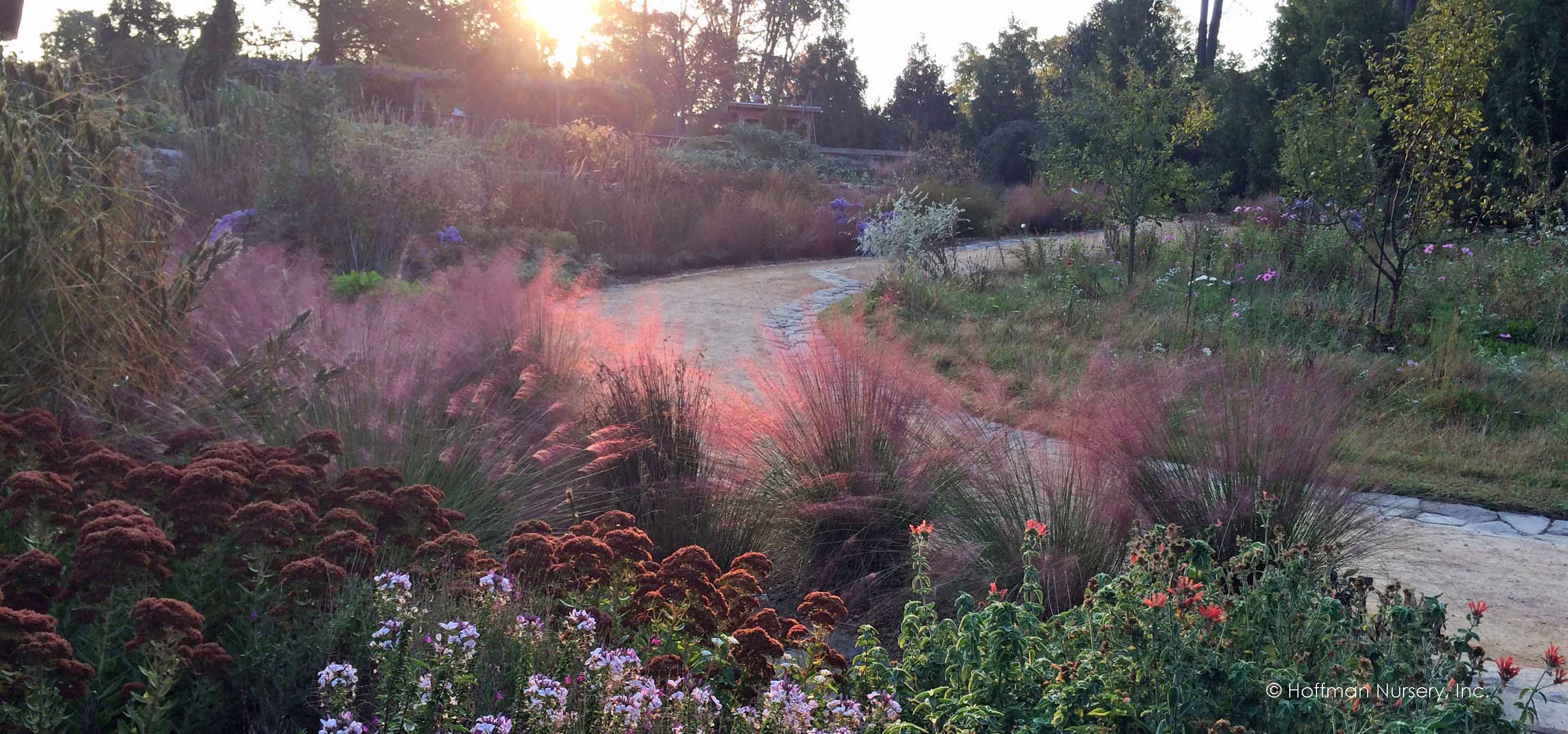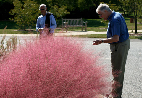 Muhlenbergia capillaris is one of the most exciting members of the grass world. Pink Muhly Grass is sought after for several reasons: spectacular pink plume color, drought tolerance and undemanding nature. Pink Muhly Grass grows in a mound with erect, blue-green foliage until September when spectacular, billowing pink seed heads form a cotton-candy crown. When planted in masses, the dramatic effect can take your breath away.